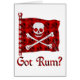 A red pirate flag with a crackled white skull and crossbones greets those about to board your boat with the essential sailor's question: "Got Rum?" Great gift for your favourite salty dog.