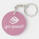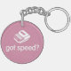 This key chain features an image of a steno machine on each side. One side asks the question "GOT SPEED?" and the other side says "TALK TO THE HANDS." Click on different background colours to customise your key chain!
