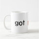 Plain white coffee mug with lettering "Got Steak?". A picture of a steak is in place of the word "steak". Could also be Got Meat