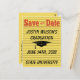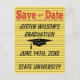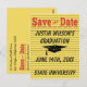 Modern bright yellow, orange and black memo style Save The Date postcard. Design includes a black graphic of a graduation hat. Perfect for jotting down notes about your graduation. Congratulations!