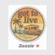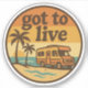 Bring the spirit of adventure wherever you go with our Got to Live waterproof sticker! Featuring a retro-inspired design with a camper van, palm trees, and a vibrant sunset, this sticker is perfect for dreamers, road trippers, and free spirits alike.