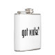 The flask itself is fine. It’s a cheap flask, obviously bought in bulk, however am prepared to overlook that. Given that it is a personalized item, I would have liked to have seen gift boxing instead of the generic packaging. Terrible printing, and/or quality. It’s a cheap, tacky vinyl. It is not cut straight and is also applied in a way that it is overhanging the bottom, causing the glue to catch on items and it will eventually roll and tear, damaging the wrap.