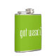 The flask itself is fine. It’s a cheap flask, obviously bought in bulk, however am prepared to overlook that. Given that it is a personalized item, I would have liked to have seen gift boxing instead of the generic packaging. Terrible printing, and/or quality. It’s a cheap, tacky vinyl. It is not cut straight and is also applied in a way that it is overhanging the bottom, causing the glue to catch on items and it will eventually roll and tear, damaging the wrap.