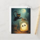 Halloween scene with ghost and black cat.