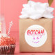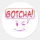Gotcha! Speech bubble. Custom colourful round stickers.