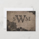 Gothic black lace over rustic burlap grunge background RSVP card.