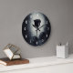 A dark and mysterious clock with a cool illustration of a goth /emo style black rose with red dripping blood on its petals. A black grunge background with an off-white colour in the centre highlighting this moody and macabre rose.
