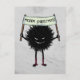 Goth Christmas postcard with an evil character from the family of the Evil Flower Bug holding a sign with the text Merry Christmas. Great for bringing the naughty in your nice Christmas mood.