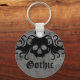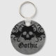 Cute key chain with a black vampire skull with fangs and swirly wings with a heart on top against a grey grungy back ground. The text reads "Gothic" but you can easily change that to your name.