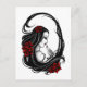 Goth girl with her little and feathered friend. Red roses in her hair. Art noveau inspired
