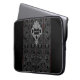 Travel in Goth Style with this elegant, ornate, neo-Victorian, steampunk, computer sleeve. Featuring a design with goth grey ornaments, blood red accents and skulls. Personalise it with your name.