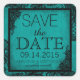 Black lace over teal grunge background Gothic save the date sticker label.