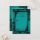 Black lace on teal grunge background place card design for a Gothic wedding.