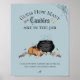 This Halloween Baby Shower game is called "Guess How Many Candies". The design: Hand-drawn in black ink, this card features a bubbling cauldron, candies, candy corn, spiderwebs and a pumpkin, all against an elegant French blue background.
