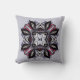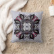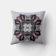 Gothic mandala monogrammed pillow with a beautiful abstract kaleidoscopic art created from an ink drawing of leaves and bugs in black, pink and purple colours. This beautiful personalised artwork is drawn in a style which resembles gothic art.