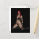 Devilish looking red headed woman in leather and metal bikini and boots, female with chains, by Eric Peacock.
