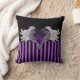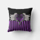 Goth, jewel-like purple heart, slightly crushed and a little cracked but not broken with Angel Wings. With a vivid striped purple and black background.