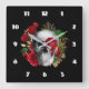 Goth Skull with Red Flowers & Gold Leaves Square Wall Clock