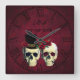 Goth Skulls Married Couple Custom Wedding Square Wall Clock