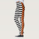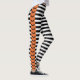 Strut your stuff this Halloween in this pair of leggings with black and white stripes and a long orange stripe running down the side of your leg with lots of bats.