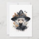 Cute Victorian witch watercolor-style Halloween card with black and orange accents.