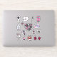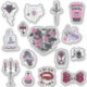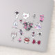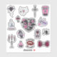 The Gothic Halloween Stickers pack includes the artwork: Rib Cage Roses, Bats , Bat Balloon, Bow Tie, Candle Holder, Coffee Cup, Dagger, Do not Disturb, Goth Heart Spider Web, Goth Lipstick Nail Polish, Hourglass, I Suck At Life, Key Bow Tie.