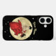 Gothic anatomical heart and funny skeleton wearing a top hat before a full moon on dark black sky and stars.