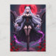 Send hauntingly beautiful Halloween greetings with this stunning gothic anime postcard. The design features an ethereal vampire princess, her long white hair flowing as she stands beneath the eerie glow of a blood red moon. Adorned in elegant black gothic attire and surrounded by romantic red roses and ornate arches, she embodies a perfect blend of dark romance and macabre elegance. This postcard is the perfect choice for sending a unique and stylish message to fellow fans of anime, gothic fantasy, and the haunting beauty of the Halloween season.