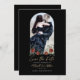 Gorgeous florals and an arch photo makes this Save the Date card stand out. Perfect for a goth or Halloween wedding. See coordinating items in our shop, Enchanted Finch.
