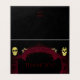 The two skulls sitting atop a deep red trellis arch are decked out in their best wedding garb on this fully customisable design.