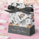 Personalised "Thank You" Halloween/Fall Baby Shower favour box, featuring hand-drawn baby carriages, black crows, witch hats, pumpkins, spiderwebs and tiny mushrooms against a chic grey background. Printed on both front and back. Simply click on "Personalise this template" to insert your own Event and Date.