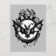 Graphic design of a fying bat silhouette and the Jonathan Corwin House also known as The Witch House in Salem, Massachusetts.