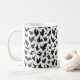 Embrace the spirit of Halloween with this black and white bat pattern coffee mug that adds a touch of eerie charm to your daily brew.
