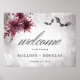 Step into a realm of dark romance with our exquisite gothic or Halloween wedding order of events poster sign that seamlessly blends rustic elegance with a touch of eerie allure. Adorned with intricate pink, burgundy, and black florals, this collection design is a mesmerising masterpiece that captures the essence of your unique love story. Against a backdrop of burgundy and black distressed hues, the design takes a bewitching turn, featuring captivating details like delicate spiders, mysterious coffins, intricate webs, and soaring bats that dance across the design. This enchanting ensemble balances the beauty of florals with the intrigue of gothic elements, creating a sign that's as unforgettable as your love. Created by Simply Farmhouse Press.