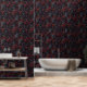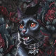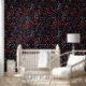Gothic Black Cat & Dark Flowers Pattern Wallpaper