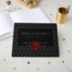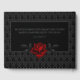 The Design features grey and black damask and a red, bloody rose. The font is in real silver foil that contrasts with the dark background. At the bottom there is a bleeding red rose giving a mysterious and slightly dark touch. The rose symbolizes love and passion while the blood represents the depth of emotions. Overall, the guest book exudes a certain drama and intensity that immediately attracts the attention of the recipient. It's perfect for couples looking for an unconventional and unique wedding.