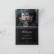 The Gothic wedding thank you card is designed to be elegant and mysterious. The Design features grey and black damask and a red, bloody rose. The font is in a delicate, almost white shade of gray that contrasts with the dark background. At the bottom there is a red bleeding rose, giving the card a mysterious and slightly dark touch. The rose symbolizes love and passion while the blood represents the depth of emotions. Overall, the card exudes a certain drama and intensity that immediately attracts the attention of the recipient. It's perfect for couples looking for an unconventional and unique wedding.