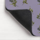 Vintage and gothic mousepad featuring illustration of black roses with greenery made into a pattern. The background is purple.