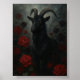 Gothic Black Goat with Red Roses Dark Art Poster