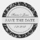 Gothic Black & Grey Flourish Envelope Seals. SAVE THE DATE SEALS. Great wedding sticker label seals for all your invitation mailings! Featuring a great gothic victorian damask pattern in BLACK, white AND GREY.