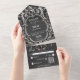 AVAILABLE WITH OR WITHOUT A QR CODE TO SCAN IN THE RSVP AREA OR WITH OR WITHOUT DINNER OPTIONS. Step into a world of timeless allure with our exquisite invitation, meticulously crafted to embody the essence of Gothic romance. Set against a backdrop of smoky black aged paper, this invitation exudes an aura of mystery and sophistication. The vintage Victorian style grey and black frame gracefully encases the elegant white text, adding a touch of old-world charm to your special day. Simple yet striking, our invitation promises to captivate your guests from the moment they receive it. Embrace the allure of the unknown and celebrate your love in true Gothic fashion. Make your wedding a masterpiece of dark elegance! Created by Simply Farmhouse Press.