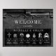 Transport your guests to a world of dark, enchanting elegance with our vintage gothic wedding order of events poster sign. The Victorian charcoal black background sets the stage for a striking contrast, as bold white text emerges from intricate black text boxes. At the pinnacle of this invitation, a three-dimensional gothic border captures the essence of mystery and romance. Unleash the magic and set the tone for an unforgettable wedding day. Created by Simply Farmhouse Press.