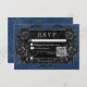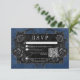 Transport your guests to a world of dark, enchanting elegance with our vintage gothic wedding response card with QR code. The deep, aged navy blue background sets the stage for a striking contrast, as bold white text emerges from intricate black text boxes. At the pinnacle of this invitation, a three-dimensional gothic border adorned with a regal black raven captures the essence of mystery and romance. The back is adorned with two intertwining vines of black roses subtly forming a heart around two embracing ravens, which adds a touch of dramatic allure. Unleash the magic and set the tone for an unforgettable wedding day. This card is part of the Gothic Black Raven & Black Roses Blue Wedding Suite created by Simply Farmhouse Press.
