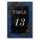 Gothic Black Raven & Black Roses Blue Wedding Table Number
