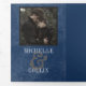 Transport your guests to a world of dark, enchanting elegance with our vintage gothic wedding invitation. The deep, aged blue background sets the stage for a striking contrast, as bold white text emerges. On the cover of this invitation, a three-dimensional gothic border adorned with a regal black raven captures the essence of mystery and romance. Inside, the first thing guests will see is your favourite couple picture above your names, written in a vintage font. The response area is adorned with two intertwining vines of black roses subtly forming a heart, adds a touch of dramatic allure. Unleash the magic and set the tone for an unforgettable wedding day. Created by Simply Farmhouse Press.