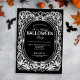 A Halloween Party Invitation with a grungy, gothic feel. Features a vintage frame, a script font and a black background which carries onto the back of the card. Customise with your own details to spread the word about your spooky event! Please browse the Halloween Party Invitations Collection for more designs.