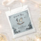 Gothic Blue Floral Baby Shower Rocking Horse Favour Bag features a hand-drawn Victorian wooden rocking horse with blue accents, black crow, spiderwebs, bats, stars, and rose floral corners, all against an elegant French blue background. Perfect way to say thank you to your guests for coming to your Victorian-themed celebration. All text is editable.