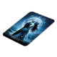 This romantic gothic wedding save the date announcement magnet features a blue skeleton couple dressed in wedding attire standing in front of the moon and ocean beach with your names and wedding date to personalize . Image generated with AI.