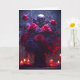 A bouquet of dried roses and sticks with a human skull in a dark vase, surrounded by candles, makes a beautiful Gothic Halloween card.