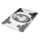 The main colours in the design are black and white. The main elements in the design are a cameos and black roses.